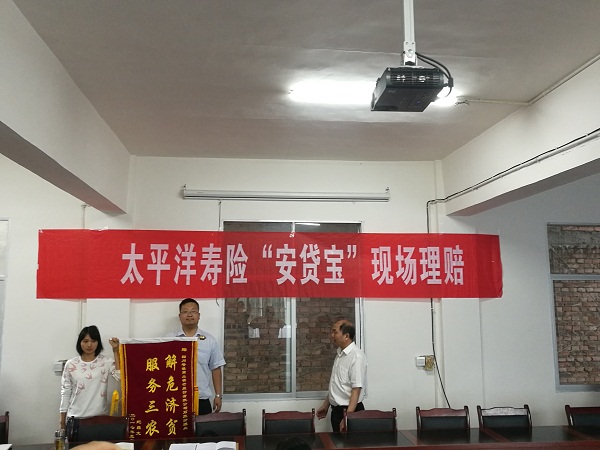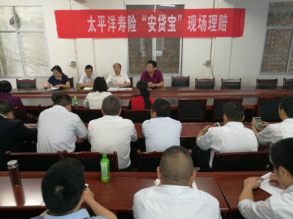 会上对农商银行石灶分理处近期三个案件进行了现场理赔,并将理赔款8.28万元交于客户家属手中。理赔现场,为了表达对太平洋寿险广元中支的感激,客户送上“解危济贫,服务三农”的锦旗以表感谢。农商行中间业务部樊总代表苍溪农商银行进行了讲话,对太平洋寿险广元中支的理赔工作给予了高度评价和肯定,并希望加深双方合作。他要求各行社要对保险有正确的认识,要大力开展、打开思路、积极营销、规避风险。随后,太平洋寿险工作人员介绍了安贷宝产品和基本的操作流程,并就销售过程中遇到的问题进行了解答。