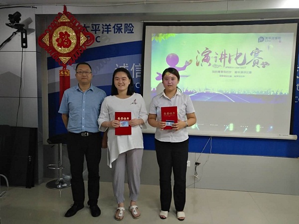 太平洋财险党委书记李雄德现场为获奖青年颁发了荣誉证书,对青年员工充分的准备和突出的表现给予了赞扬。他表示,此次活动为青年员工提供了一个展示自我的平台,通过比赛也让公司发现了部分青年员工的潜能和实力,公司以后会为青年提供更加广阔的成长空间和足够的机会,让有为青年能快速成长。他要求,青年员工一是从做一名合格的保险销售人员的目标出发,要勇于展示自己的风采风貌和精气神,学会表达自己、推销自己;二是要敢想敢做,为公司活力文化、创新文化献策献力;三是要在内心形成固化的规矩,企业文化需要的是文化传承而不是行政制度要求;四是希望通过讲自己的故事,听别人的故事,感悟自己,追求自己的人生目标,让自己与公司共同成长。