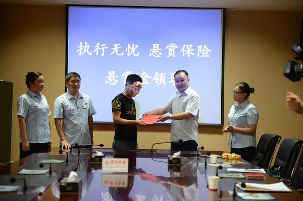 前期,蒋女士在人保财险广元市分公司投保了“执行无忧”悬赏保险,根据保险合同约定,该公司在接到法院的悬赏结果通知书后,主动作为,积极配合,在8月11日当天向举报人支付悬赏金3000元。