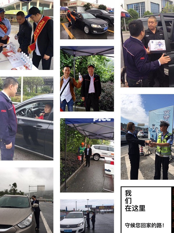 各服务网点悬挂中国人保“心服务”站的条幅、易拉宝和宣传海报,向客户赠送矿泉水,提供旅游提示、景区指引、行车导航、宣传推广旅游意外保险,同时提供保险事故快速处理、事故救援、故障救援、伤员救助等服务。受到了客户的一致好评。