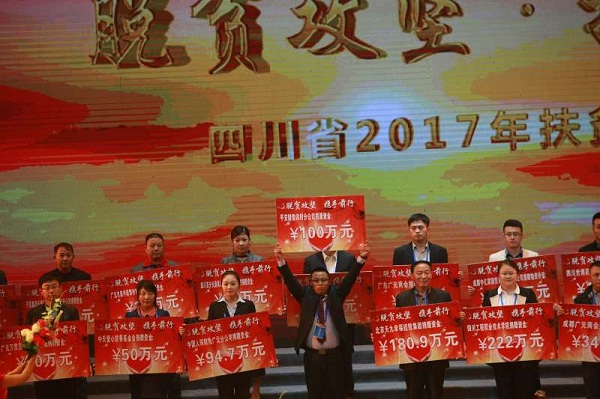 现场捐赠过程中,中央在川企业、省国有企业、民营企业及爱心人士积极参与。其中,平安财险广元中支作为在川民营企业现场捐赠专项扶贫资金100万元,定向用于旺苍县扶贫工作。