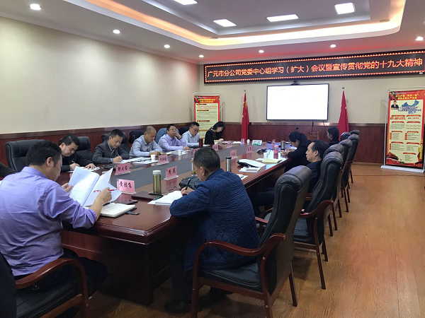11月7日,中国人寿广元市分公司召开党委中心组学习(扩大)会议,学习贯彻党的十九大精神,市公司党委成员、各部门负责人,各县区支公司经理参加了会议。会议由市公司党委副书记(主持工作)黄祖飞主持。