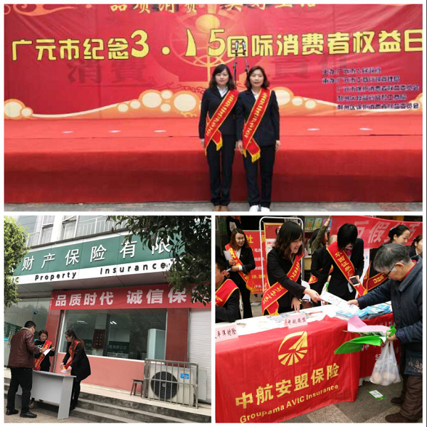 在“3.15”消费者权益日来临之际,中航安盟广元中支根据今年“3·15”保险消费者权益保护活动的主题 “品质时代 诚信保险”,按照广元市保险行业协会的要求和分公司3.15客户服务活动的具体安排,结合当地实际,制定活动实施方案,积极开展3.15期间保险消费者权益保护教育普及活动宣传。