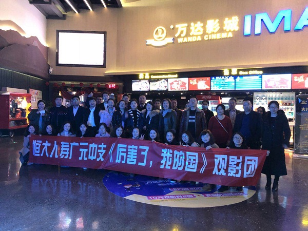 2018年3月16日下午,恒大人寿广元中支一行37个人在广元万达影城集体观看了时长一个半小时的爱国主义题材影片《厉害了!我的国》。