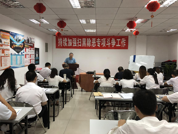 8月16日,阳光人寿广元中支组织全体内勤召开“扫黑除恶专项斗争工作会”,学习落实广银发【2018】64号《 中国人民银行广元市中心支行关于加强扫黑除恶专项斗争线索摸排及信息宣传工作的通知》,并成立扫黑除恶专项斗争领导小组。