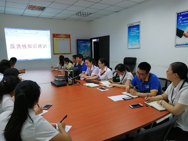 培训中,培训人员从反洗钱的重要性和必要性、反洗钱法律法规和规章制度、公司在反洗钱工作中的主要义务、反洗钱法律责任等方面进行了阐述。通过此次培训使大家掌握了反洗钱的基本知识,明白了从自身岗位出发如何履行反洗钱义务,强化了该公司全体员工的反洗钱意识,将反洗钱工作推上了一个新的高度。