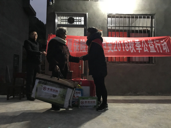 2018年11月20日,华夏保险广元中支爱心小队陪同市金融局领导一同驱车3个多小时,来到了广元市剑阁县金仙镇金仙村,探望走访村里的6户贫困老人,为老人们送去慰问物资与暖暖的关怀。