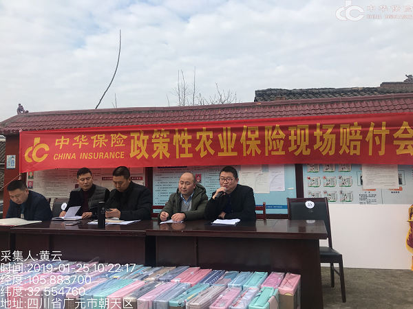 1月25日,中华财险广元中心支公司总经理唐江川带队到朝天区沙河镇秦岭村对金田农业公司友洪合作社的受灾农户进行现场赔付。